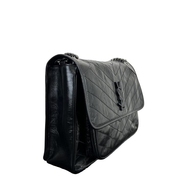 Saint Laurent Niki Medium Storm –Zwart Schoudertas in Vintage Kalfsleer