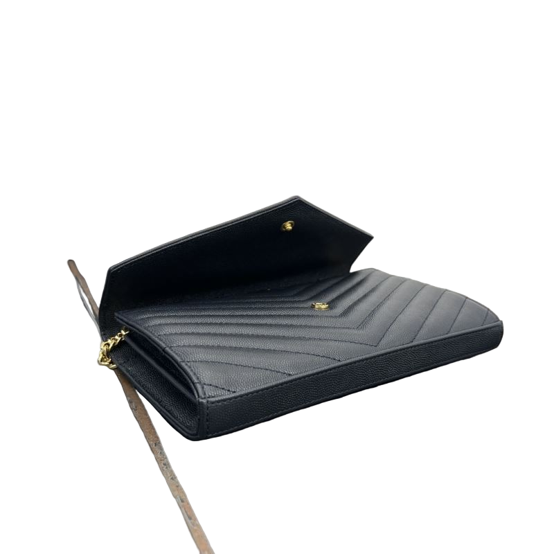 Saint Laurent Cassandre Chain Wallet – Blauw Preloved Designer Clutch Schoudertas