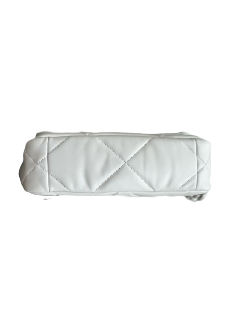 Chanel 19 Flap Bag Small – White Glossy Lambskin with Gold, Silver & Ruthenium Hardware – Preloved Shoulder Bag